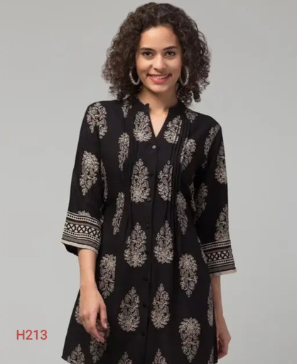 Hive91 34" Rayon Black Jaipuri Tunic Front Pleats 3/4 sleeves, Mandarin Collar