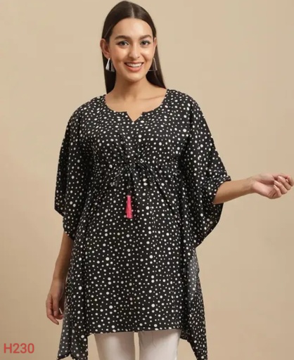 Womens Black Crepe Printed Kaftan Tops