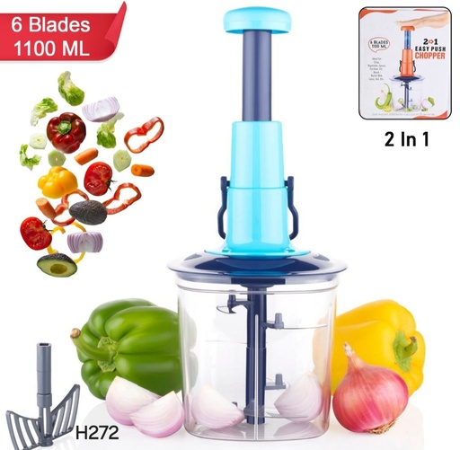 6 Blades Manual Hand-Press Vegetable Chopper (1100 ML)