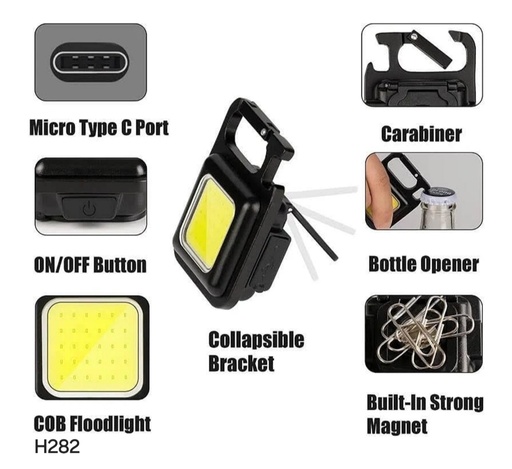 Mini Rechargeable Keychain Flashlight - 4 Light Modes with Folding Bracket & Magnetic Base