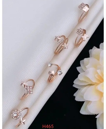 Rose Gold Plated 6 Piece White Crystal Drop Heart Multi Designs Ring Set For Women & Girls