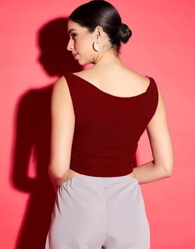 Istyle Can Womens's Printed Stretchable Draped Crop Top Maroon