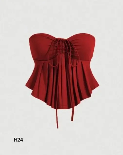 Drawstring Front Off-Shoulder Ruffle Hem Tube Top ₹321