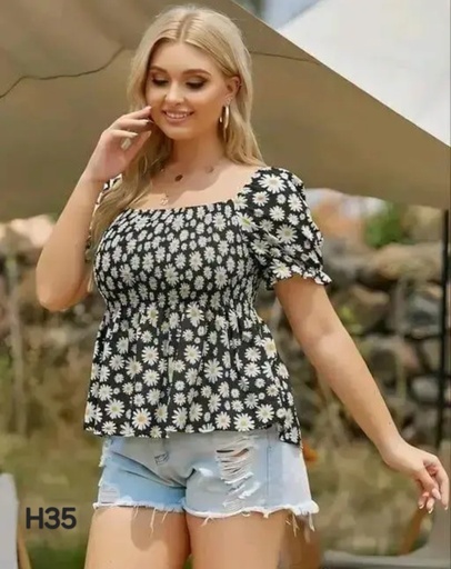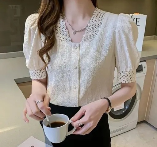Casual Polyester Blend V-Neck Puff Sleeves Printed Black Stylish Top