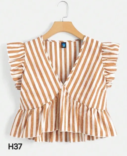STRIPED RUFFLE ARMHOLE ASYMMETRICAL PEPLUM TOP YELLOW