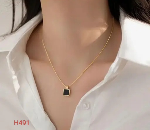Oscar Enterprises Gold Plated Square Black Geometric Necklace For Mens And Girls -03