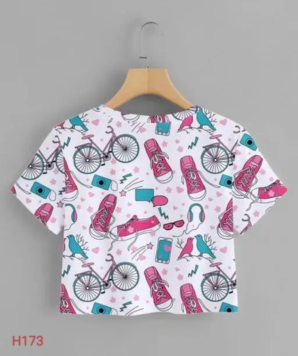 Trendy Printed Crop Tshirt Round Neck Top For Womens