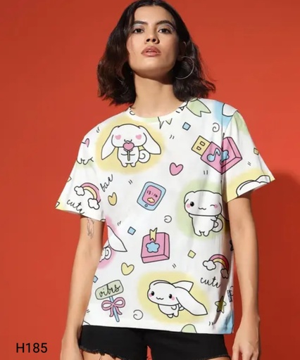 WOMEN LOOSE FIT HALF SLEEVE ALL OVER PRINT TSHIRT