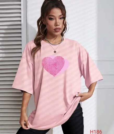 Being Wanted Oversized Printed Womens Half Sleeve Round Neck Pink Cotton Tshirt