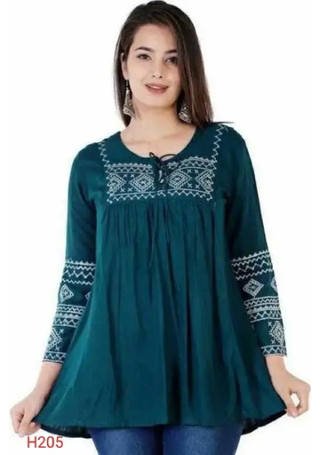 Women Embrodery Green Top, Frock_Top,Kurti_Top